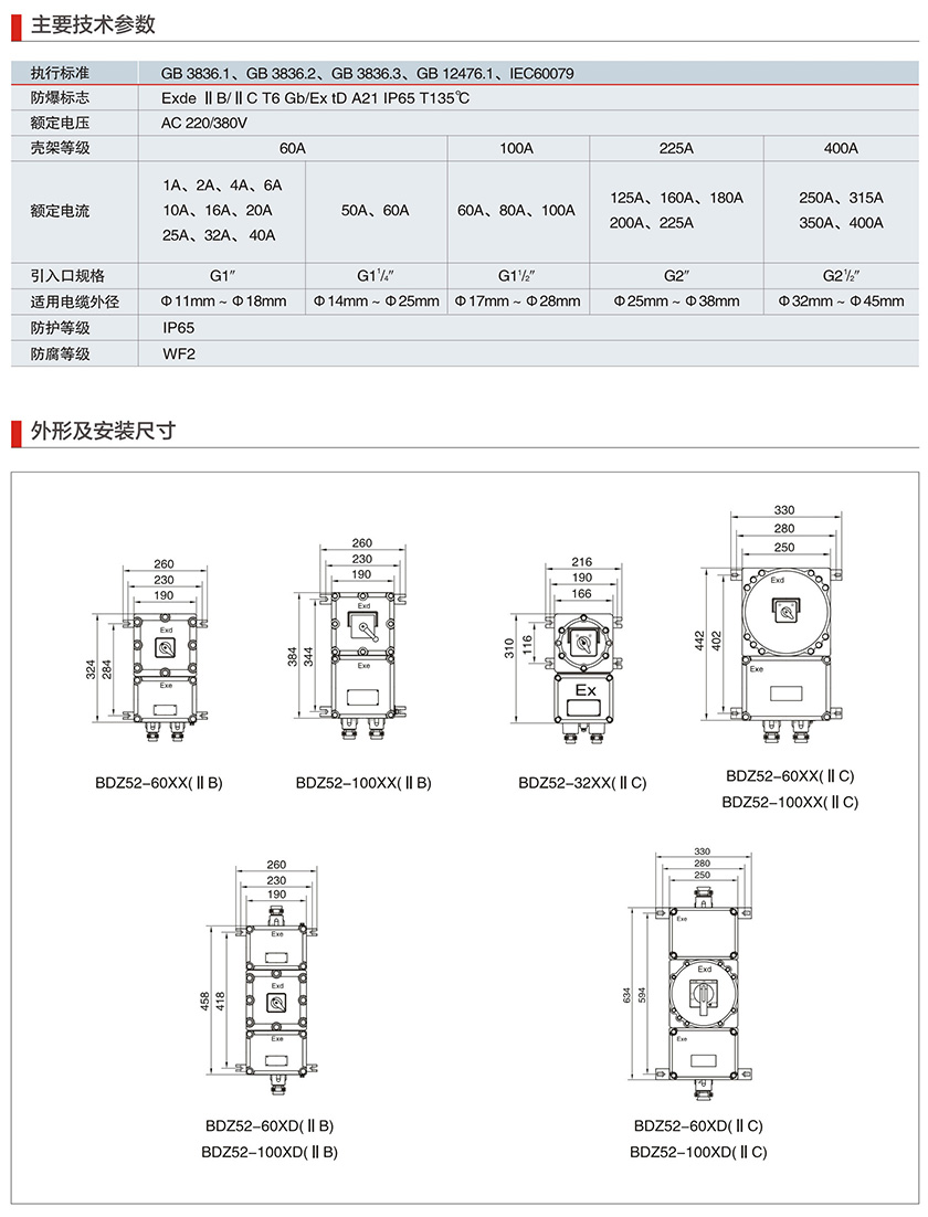 BXS系列防爆检修电源插座箱(IIB、IIC、Ex tD)